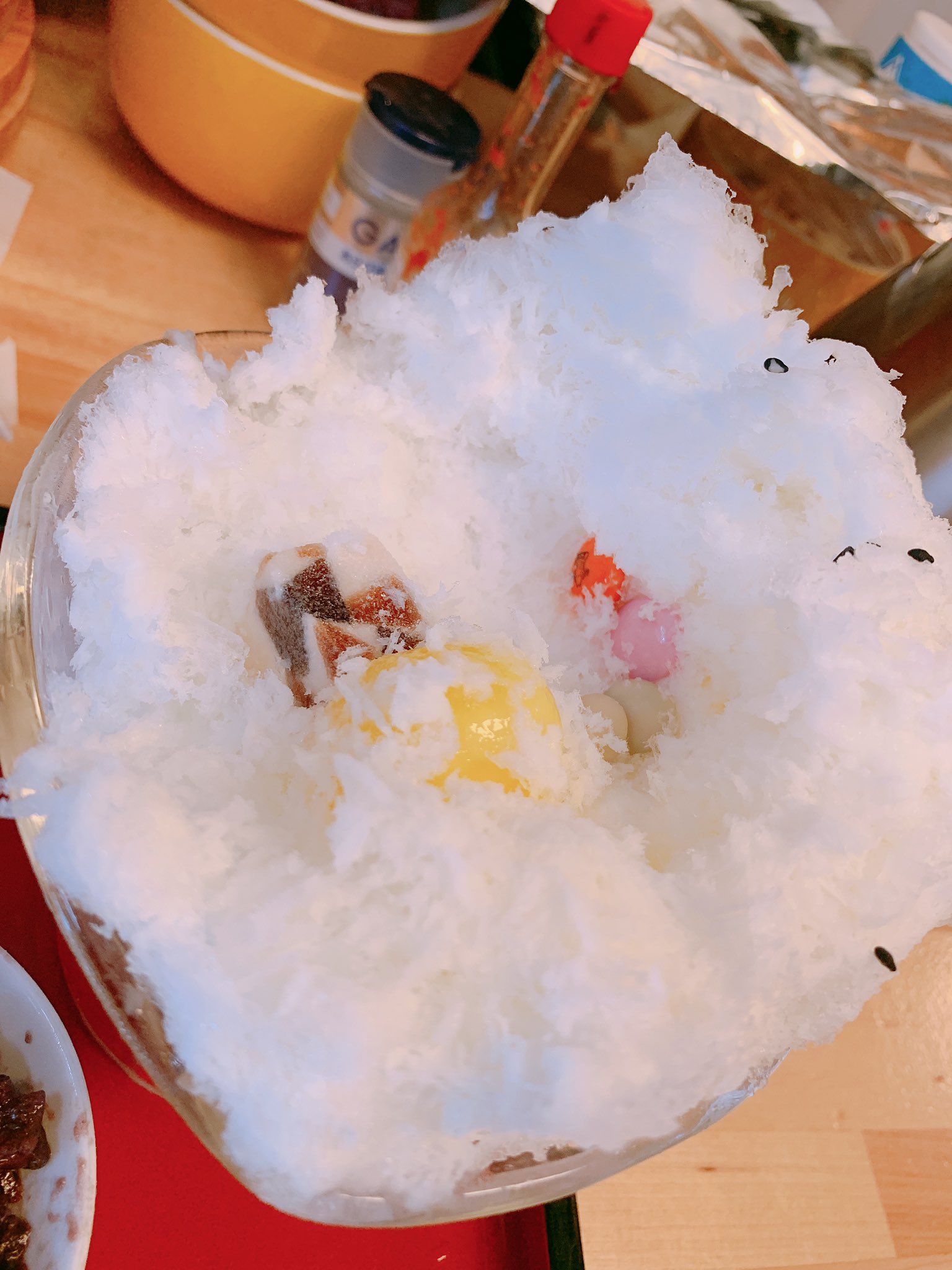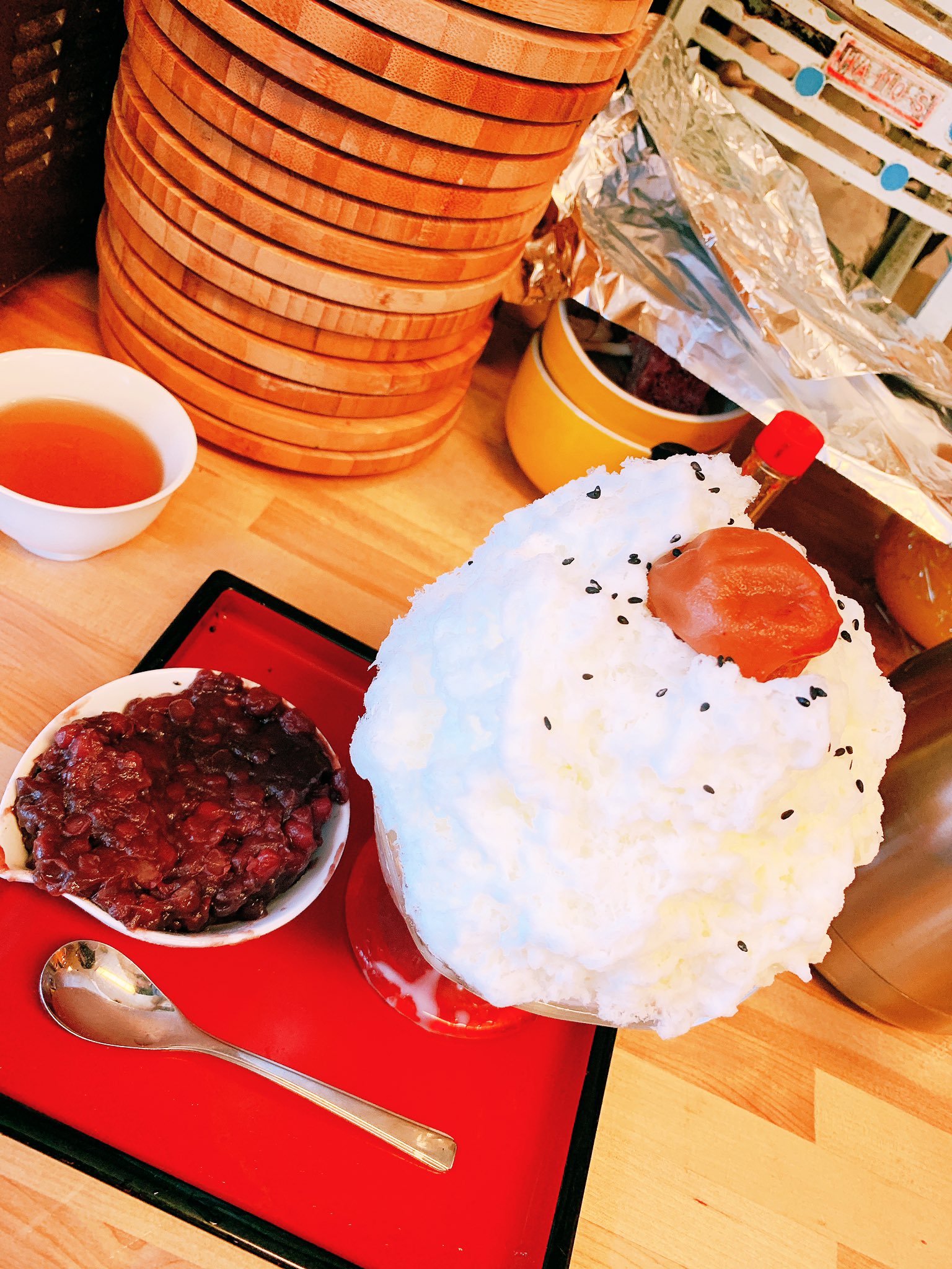 オルゴール On Twitter 今日のかき氷のコーナー ひみつ堂 母弁 冒険 とメニューに書かれていました 我々はその冒険を歓迎します ビジュアルインパクトが凄い ご立派な梅干と胡麻がぱらり 粒あんがドーン 梅干ごま塩がご飯の友であるならば 小豆はかき氷のベストフレンズ